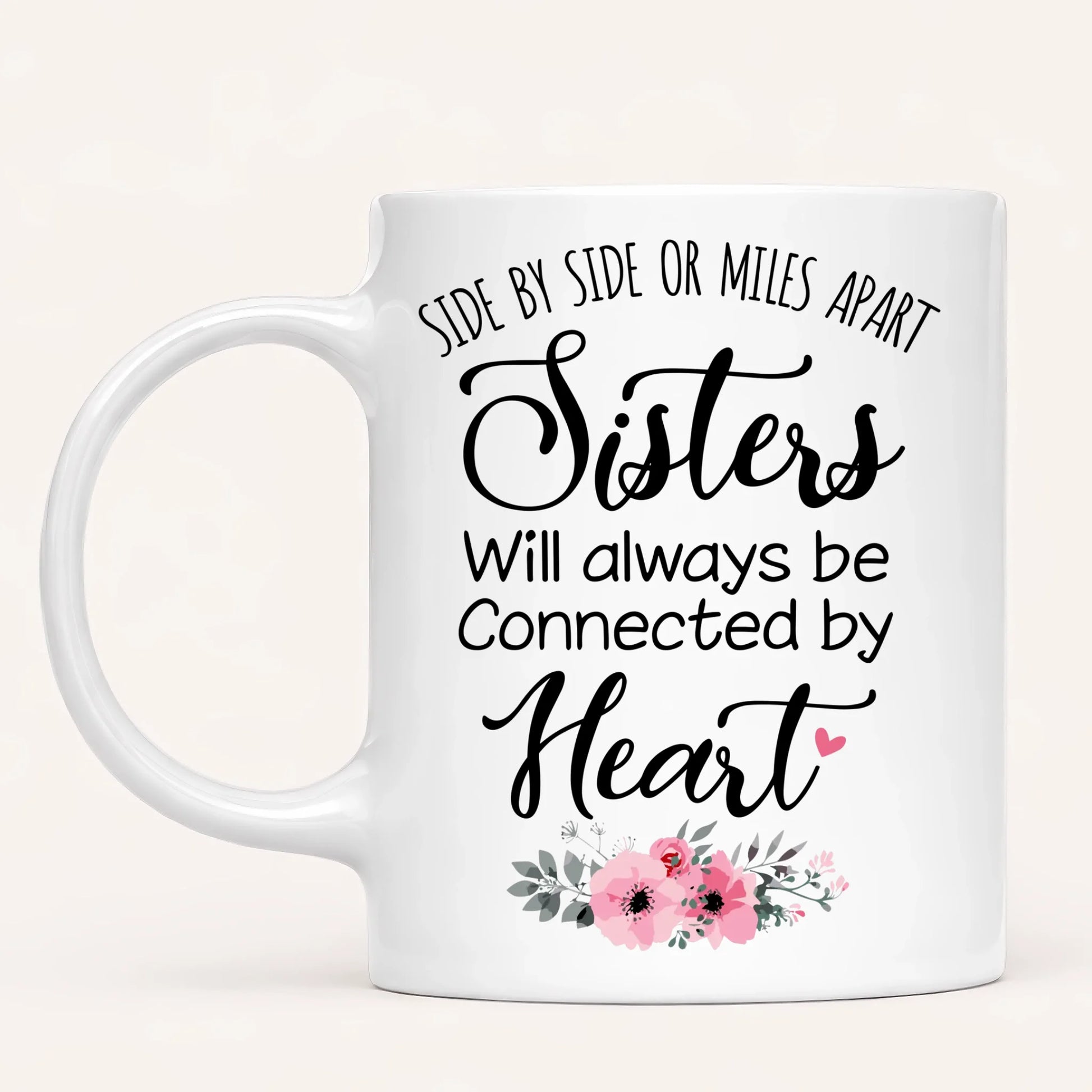 Personalised Sister Mug | Side by Side, Miles Apart